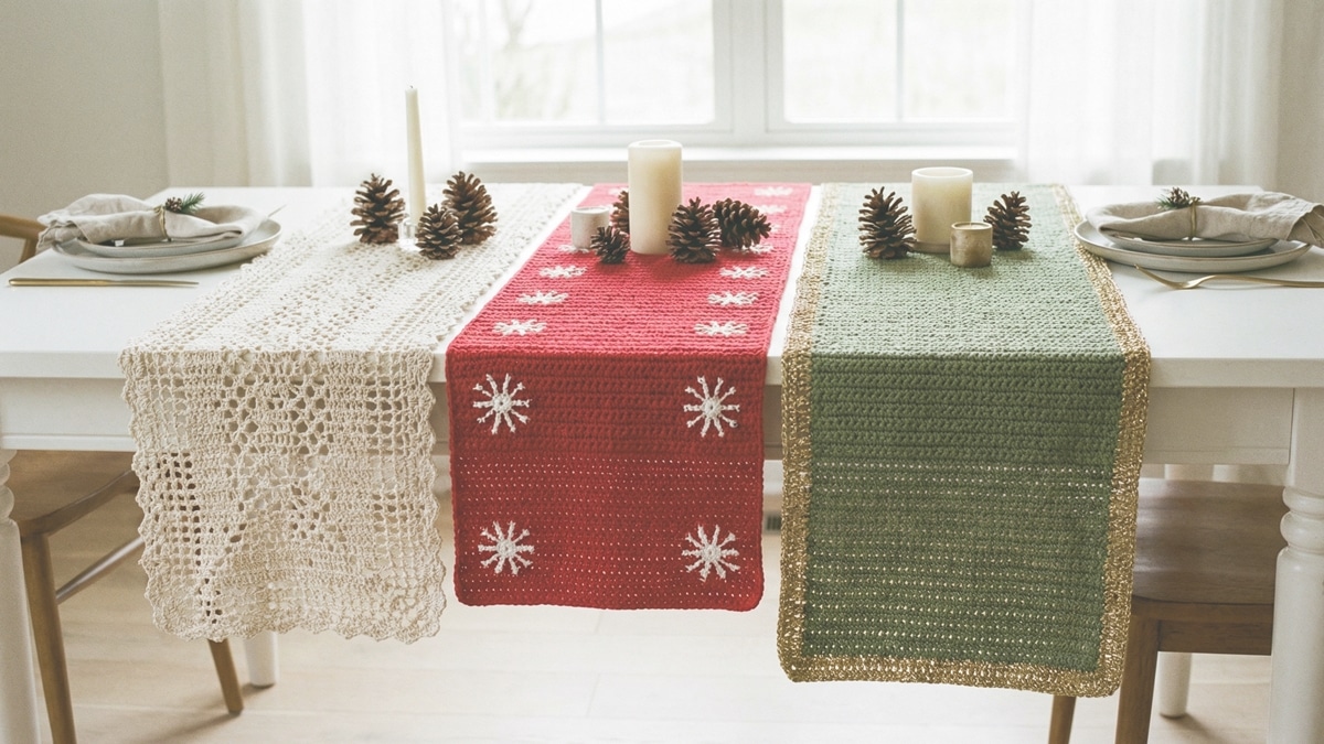 A vantagem é que um único caminho de mesa em crochê para fim de ano já transforma o visual da sala de jantar ou da cozinha, sem necessidade de uma grande reforma. Com o modelo certo, você deixa a mesa mais sofisticada, festiva e pronta para receber família e amigos.