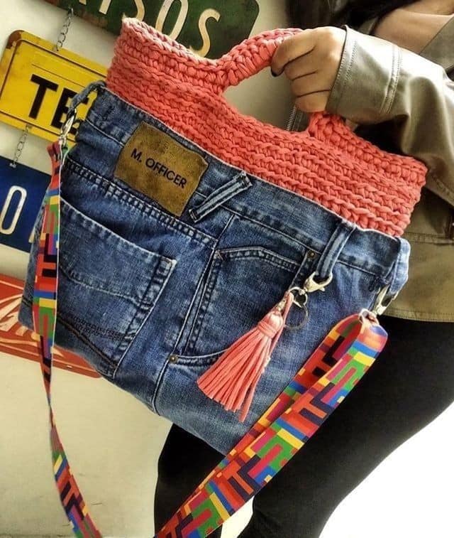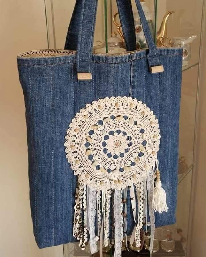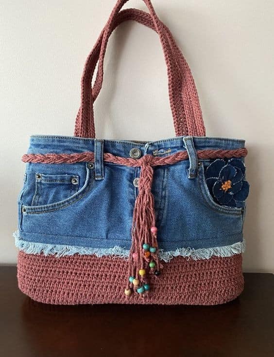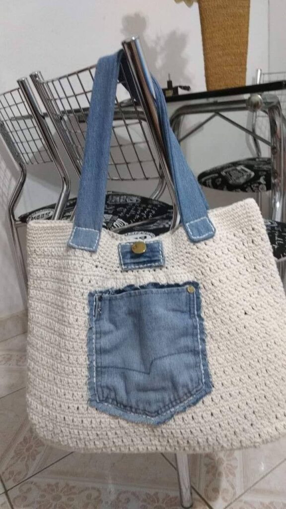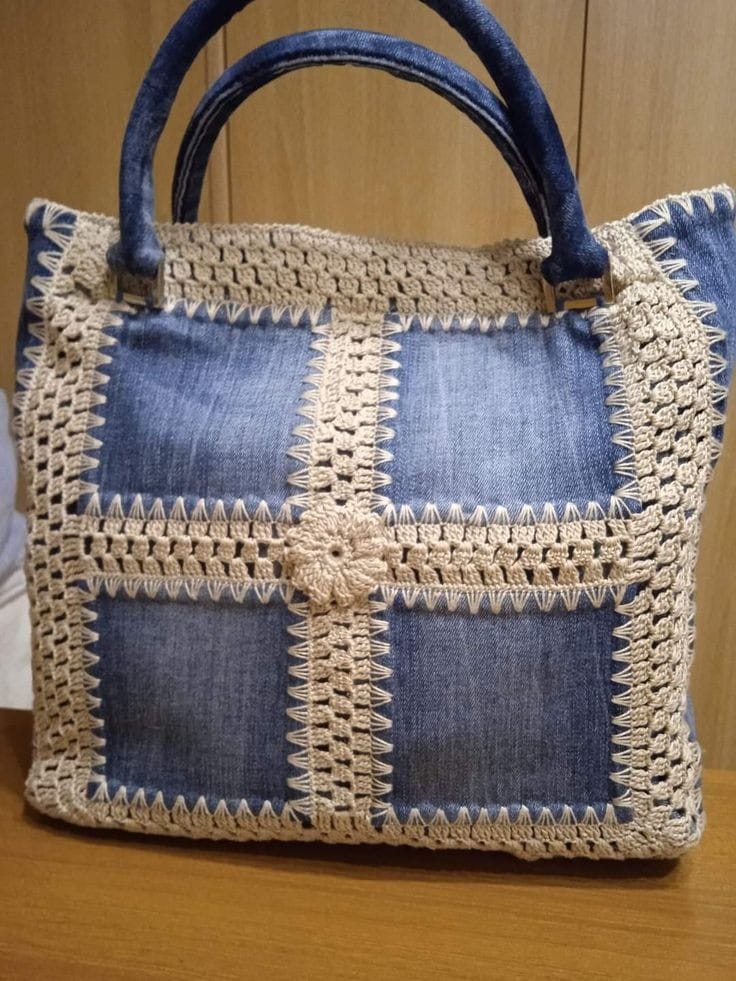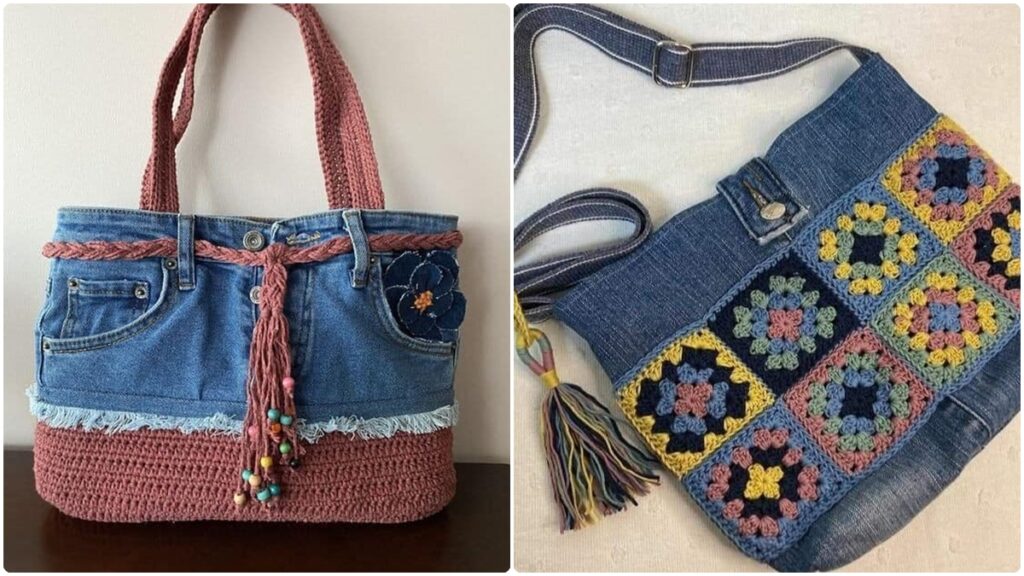 - Bolsas artesanais: feitas com tecidos antigos e incrementadas com detalhes de crochê.