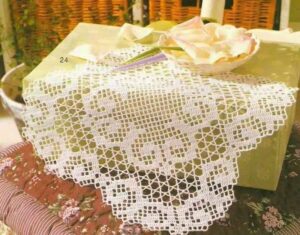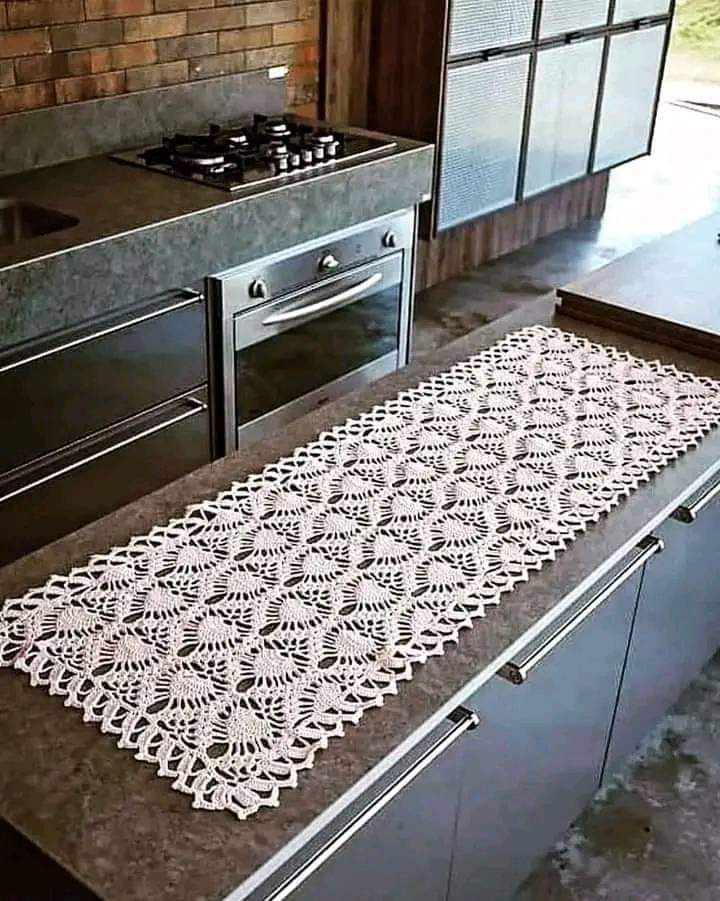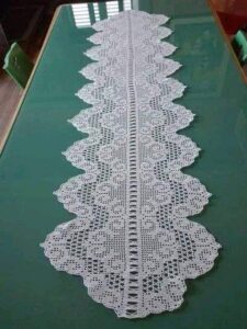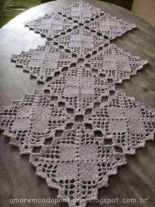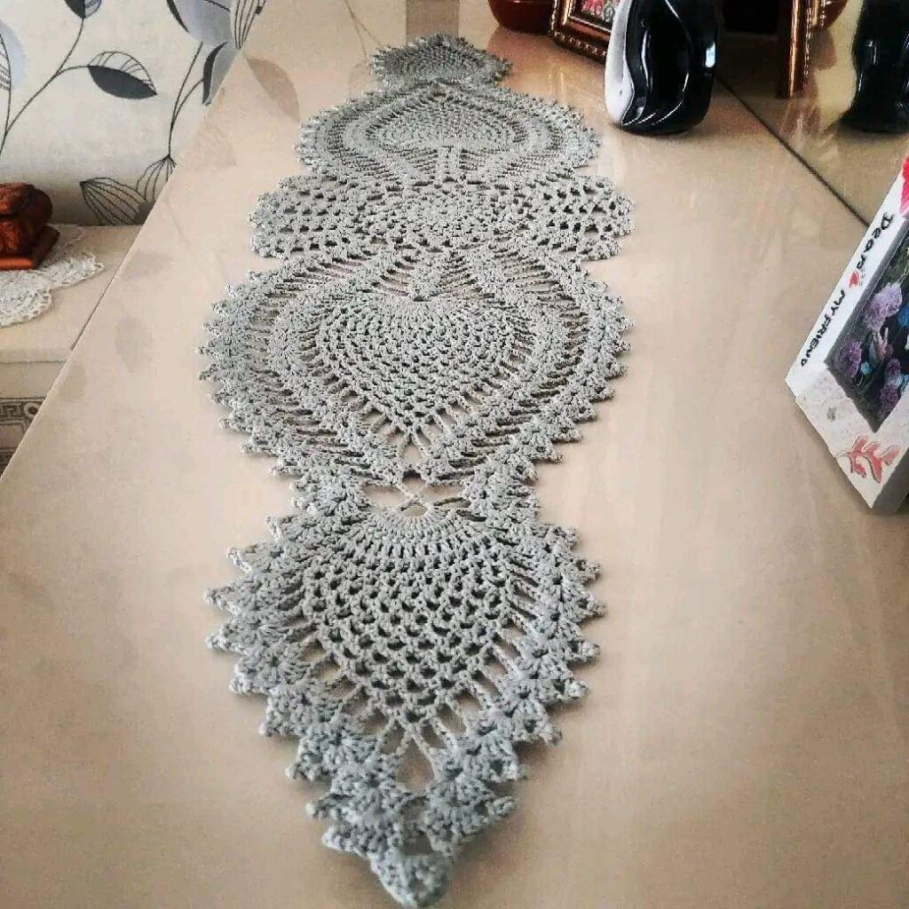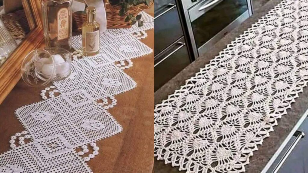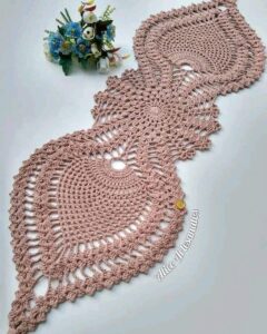 - Trilho de Mesa com Ponto Abacaxi: Um clássico do crochê, o ponto abacaxi cria um design intrincado e elegante. Este padrão é ideal para quem já tem alguma experiência em crochê.