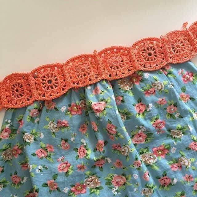 - Vestidinhos com flores de crochê aplicadas: um detalhe que faz toda a diferença.