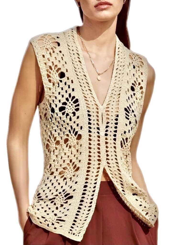 O casaco de crochê pode ser o destaque do visual ou funcionar como uma peça coringa. Combine-o com vestidos leves para um look romântico, use com jeans e camiseta para um estilo casual, ou aposte em versões longas e monocromáticas para um visual elegante e sofisticado.