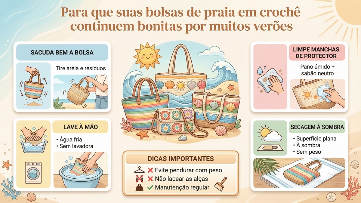 Como cuidar das bolsas de crochê depois da praia