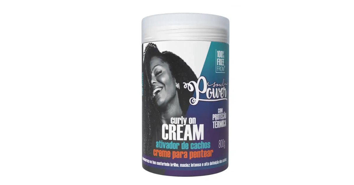 Creme para Pentear Ativador de Cachos Soul Power: Esse creme é conhecido por ativar a curvatura com leveza, mantendo os fios definidos, soltos e com movimento. Ele é o responsável por dar forma real aos crespos durante a fitagem.