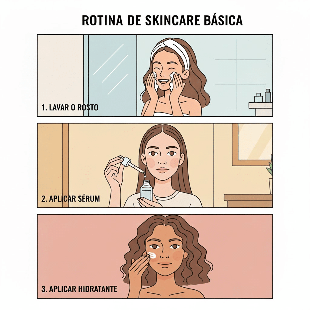 Recomendação final: cada pele reage de um jeito; este é apenas um artigo informativo básico sobre uma rotina de skincare. Para escolher os produtos ideais e evitar irritações, o mais seguro é se orientar com um dermatologista.