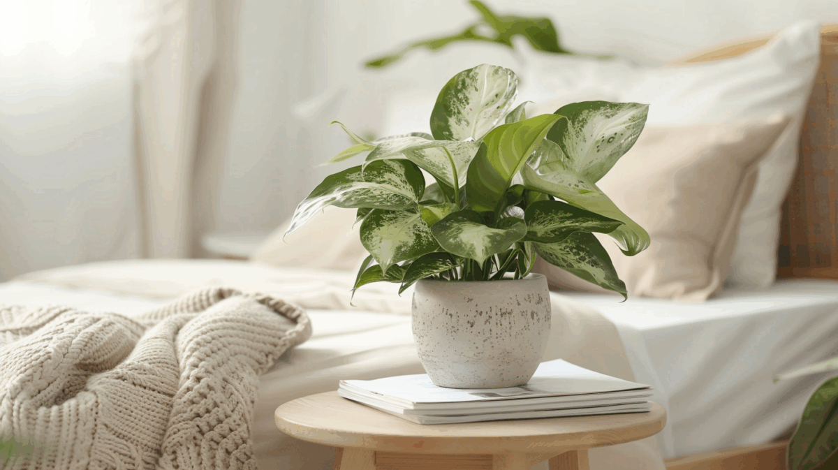 A Aglaonema é uma das plantas ornamentais mais queridas para interiores porque se adapta facilmente a diferentes níveis de iluminação. Ela se desenvolve bem mesmo em locais com pouca luz natural, o que a torna ideal para o quarto.