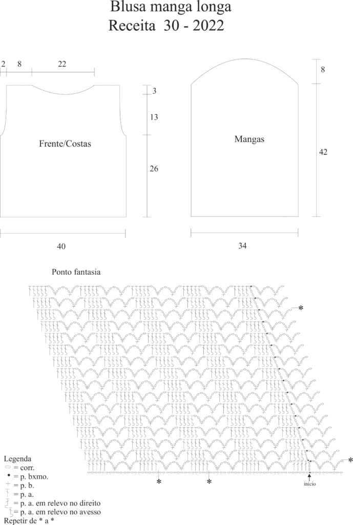 RECEITA COMPLETA COM GRÁFICO DA BLUSA DE MANGA LONGA DA ARTESÃ MARIA SOCORRO BARRETO!