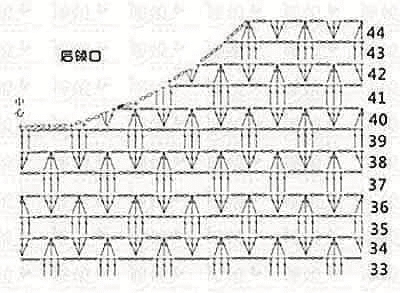 Pontos utilizados: correntinha (corr.). Ponto baixíssimo (p. bxmo.): Introduza a ag., laç., puxe o p. e passe diretamente no p. da ag.. Ponto baixo (p. b.): introduza a ag. laç., puxe o p. e com outra laç., rem. todos os p.. Ponto alto (p. a.): laç., introduza a ag., laç., puxe o p. laç., rem., 2 p. e com outra laç., rem. todos os p.. Ponto alto em relevo avesso (p. a. em relevo): laç., introduza a ag., horizontalmente por trás do p. a. da carr. anterior, laç., puxe o p. laç., rem., 2 p. e com outra laç., rem. todos os p.. Ponto alto em relevo direito (p. a. em relevo): laç., introduza a ag., horizontalmente pela frente do p. a. da carr. anterior, laç., puxe o p. laç., rem., 2 p. e com outra laç., rem. todos os p.. Ponto fantasia: siga o gráfico.