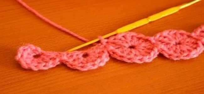 - Trabalhe uma carreira de pontos altos em cada ponto da correntinha.
