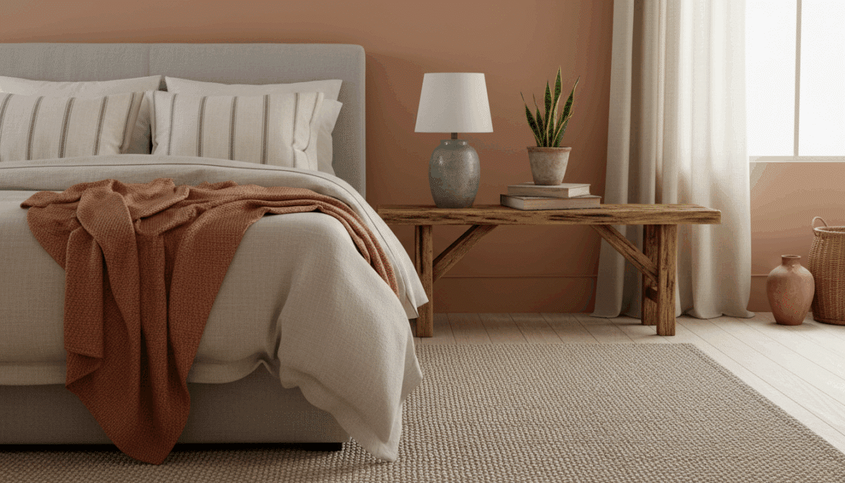 - Estilo: quartos minimalistas pedem menos elementos e linhas retas. Já estilos boho ou rústico aceitam bancos de madeira, cestos, fibras naturais e composições mais cheias.