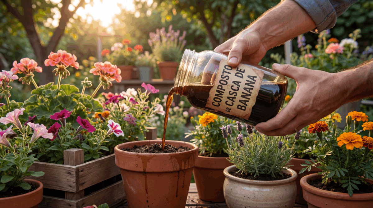 Quer ver suas plantas explodirem de flores sem gastar nada? Um dos adubos caseiros mais potentes e gratuitos é feito com água de casca de banana, rica em potássio — o nutriente que estimula a floração.
