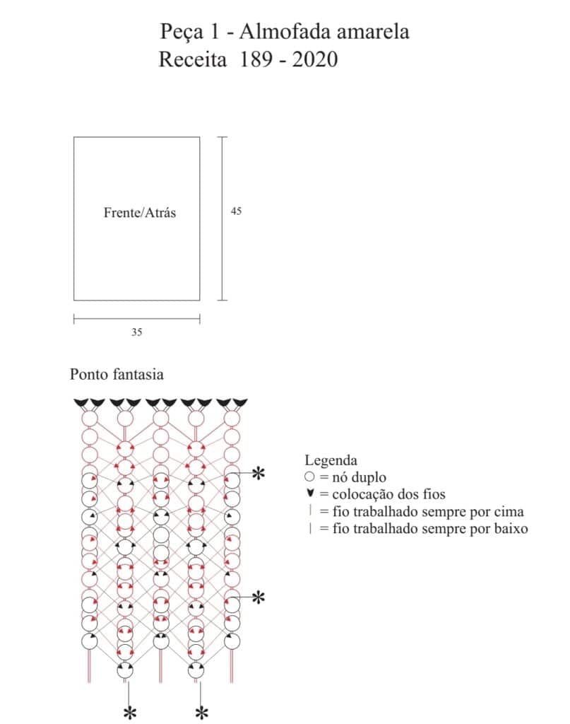 - Almofada – 1 almofada pronta com 35 cm x 45 cm.