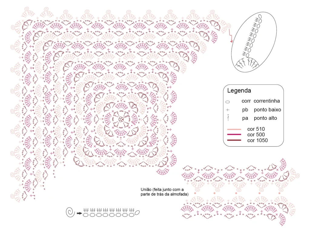 A receita utiliza tons de rosa e bordô, mas você pode adaptá-la a qualquer paleta que combine com o espaço a ser decorado. A almofada é perfeita para quem quer adicionar um detalhe acolhedor à decoração, sendo versátil e fácil de confeccionar com as instruções adequadas.