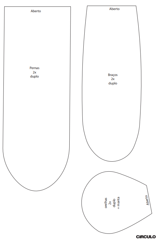 - Risque o molde dos braços, pernas e orelhas no tecido preto. Costure no risco, desvire e encha braço e pernas com a fibra siliconada. Nas orelhas coloque manta fina na hora de costurar.