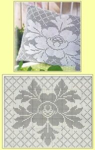 Gráfico Almofada de Crochê Rosa e Henna