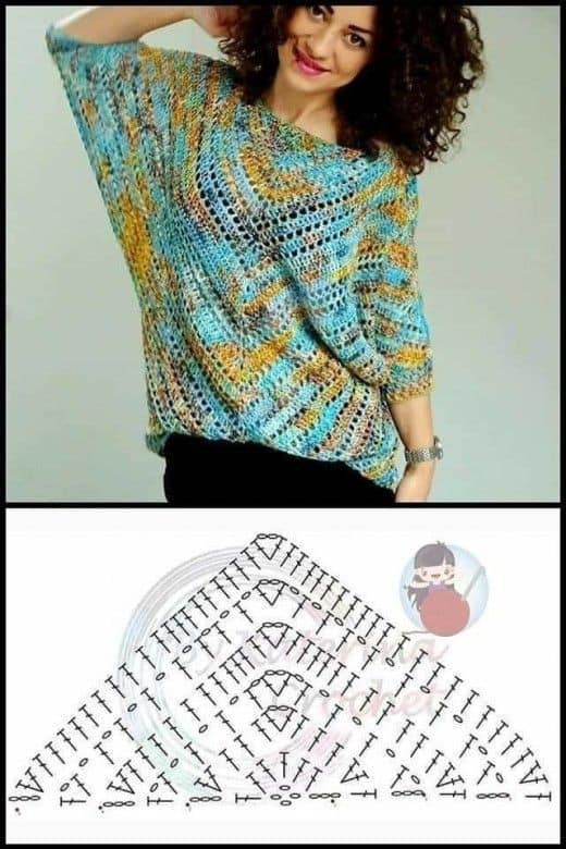 Amostras e Gráficos de Blusas de Crochê Topdown: