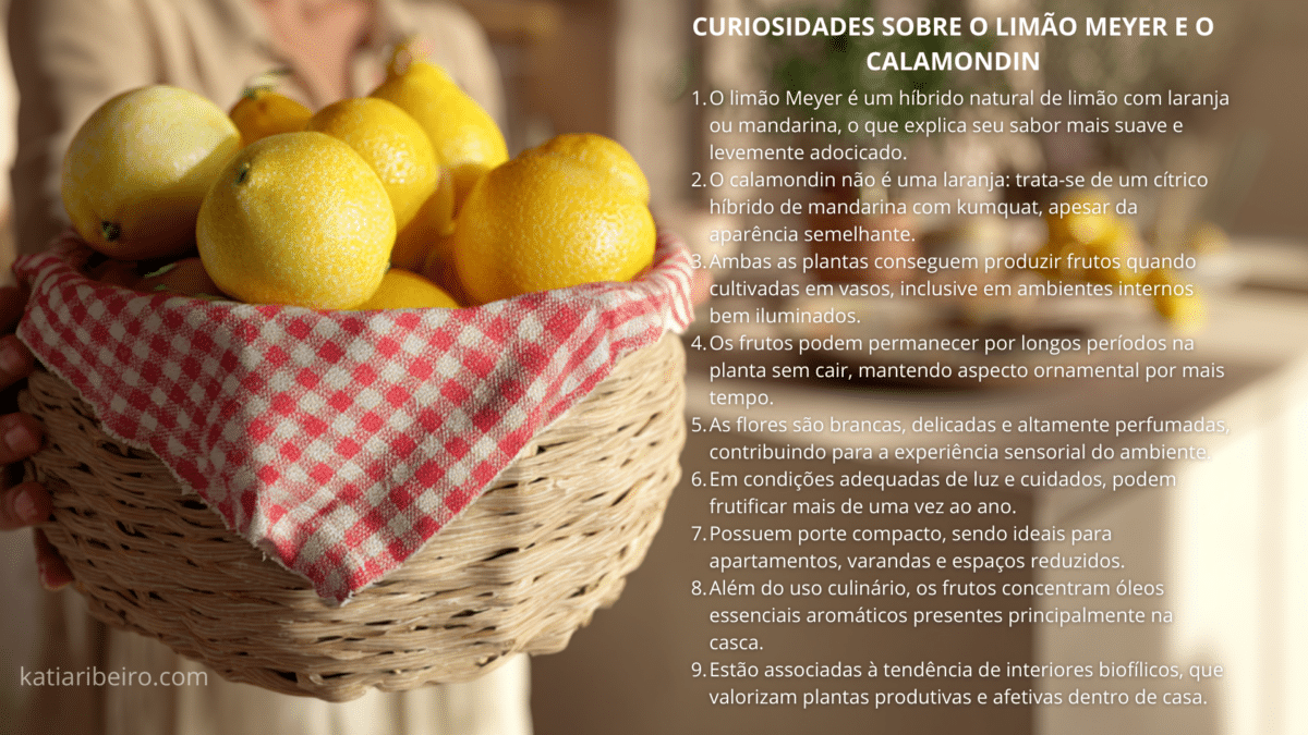 O Calamondin e o Limão Meyer representam mais do que árvores frutíferas: são elementos vivos de decoração, fontes naturais de vitamina C e símbolos de um estilo de vida mais equilibrado.