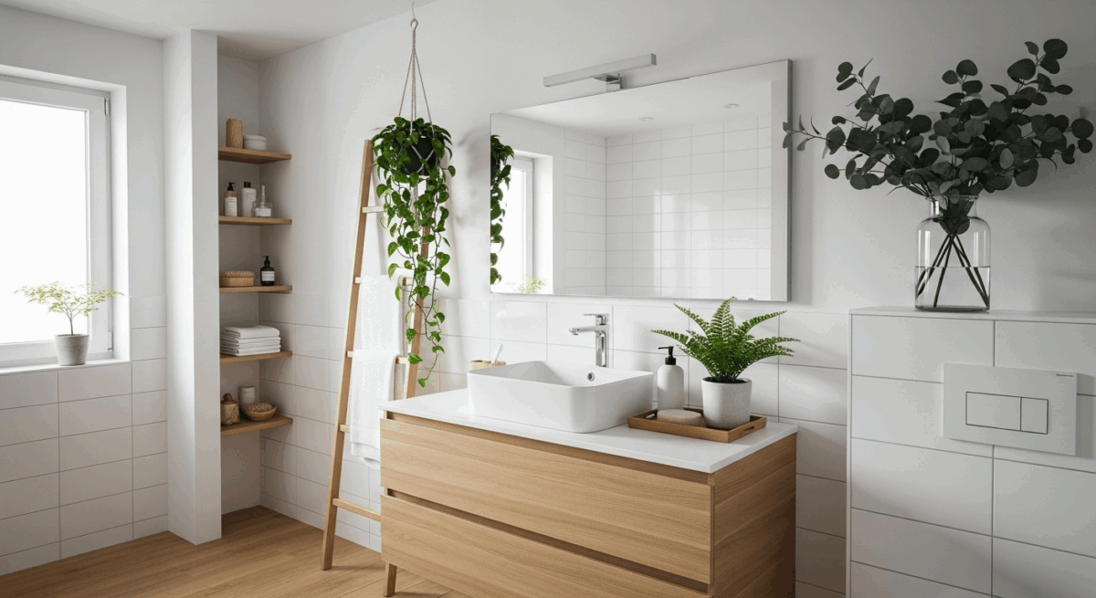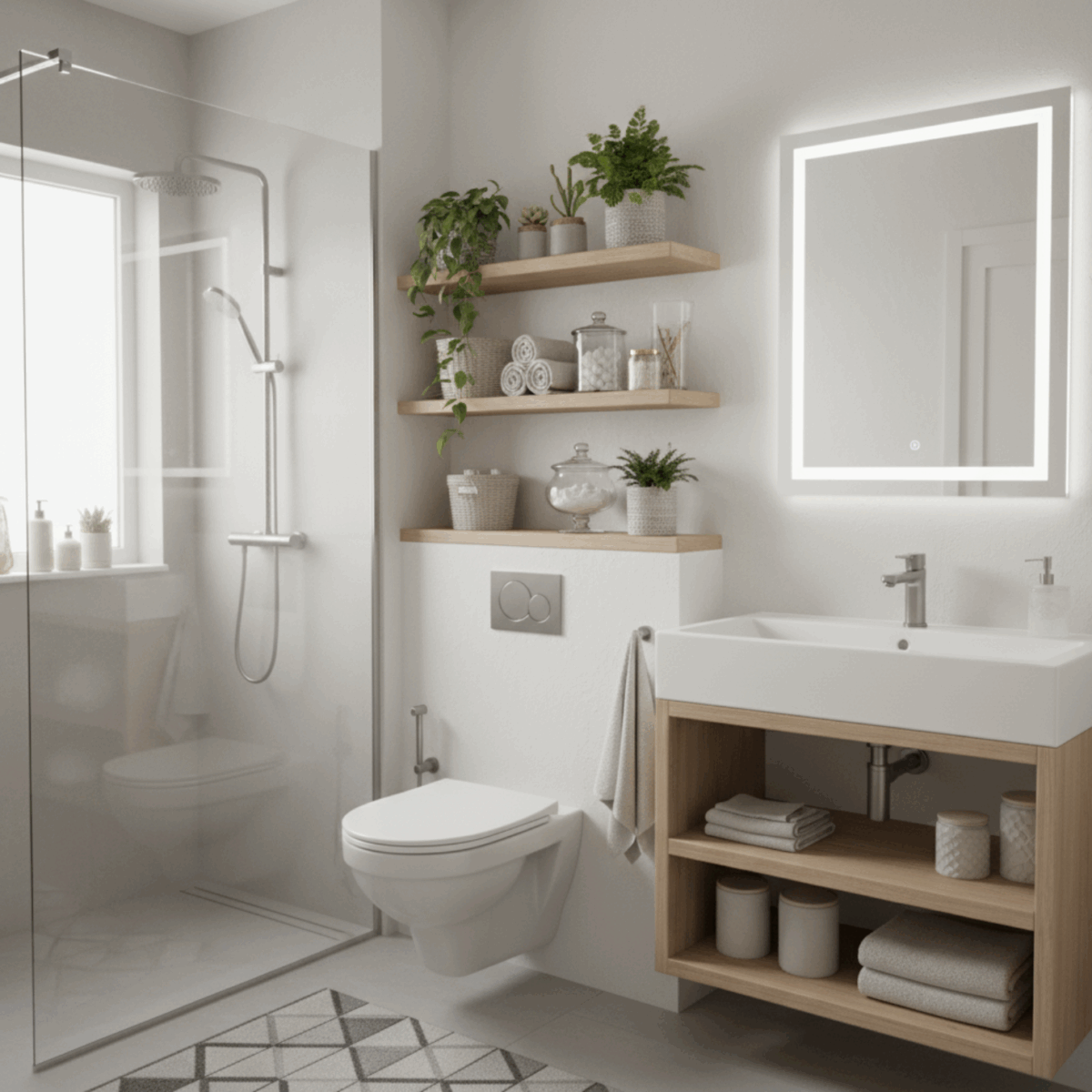 Edite, meça e ilumine em camadas. Com bancada slim, espelho bem iluminado, nicho no box, materiais foscos e paleta quente, o banheiro fica organizado, acolhedor e maior aos olhos — solução profissional, custo sob controle e manutenção fácil.