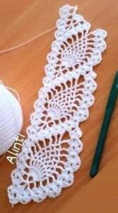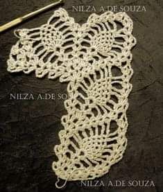 - Siga o padrão escolhido para criar o design do seu barrado. Isso pode envolver uma combinação de pontos básicos, como correntinhas, pontos altos, pontos baixos e picôs, trabalhados de acordo com as instruções do padrão.