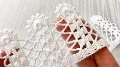 - Repita o padrão quantas vezes forem necessárias para cobrir toda a borda do seu projeto. Certifique-se de manter uma tensão uniforme no fio e nos pontos para evitar que o barrado fique muito apertado ou frouxo.
