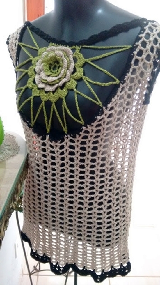 Optei por fazer sem mangas porque irei presentear minha irmã que mora em lugar muito quente.