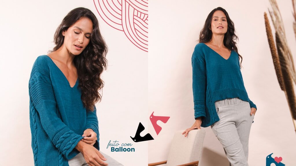 Ao terminar sua blusa de tricô assimétrica, você cria uma peça única, demonstrando habilidade, dedicação e paciência.