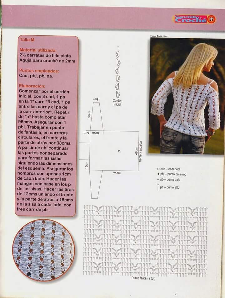Gosto muito de blusas com detalhes diferentes e esta está bem bonita a manga, um ponto simples e um resultado excelente.
