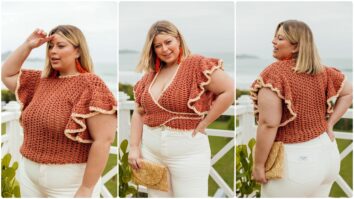 Na fase final, utiliza-se a agulha de tapeçaria para unir os ombros, formando a estrutura básica da blusa. Também devem ser costuradas as mangas nas cavas. Para o acabamento, trabalha-se com pontos baixos na primeira carreira e ponto caranguejo na seguinte. Isso proporciona um encerramento elegante para o decote e a borda das mangas, garantindo que a peça final não apenas esteja pronta, mas tenha refinamento e um visual requintado.