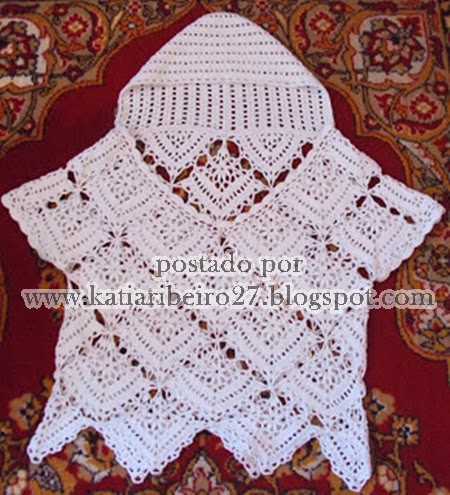 Primeira postagem do ano , ví esta blusinha postada no face e corrí atrás do gráfico para vocês porque achei muito fofa, une se os squares e está pronta e este capuz atrás fez toda a diferença, sou meio suspeita porque amo capuz .