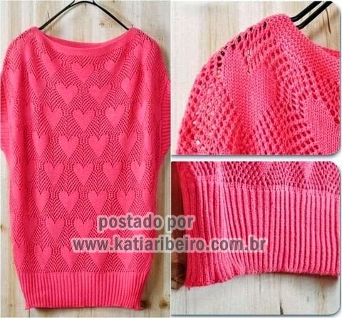 BLUSA EM TRICÔ MOTIVO CORAÇÃO 3 CORES COM GRÁFICO