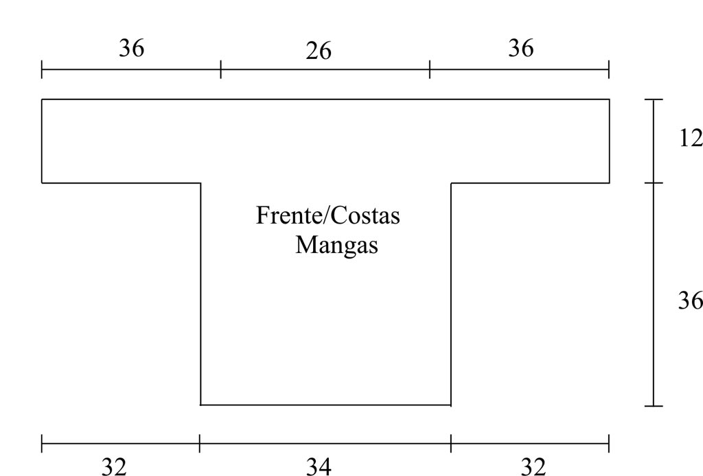 Frente, costas e mangas – São trabalhadas juntas, começada pela parte de cima da blusa. Faça uma corr. de aproximadamente 200 p. e trabalhe em p. segredo (= 48 motivos) durante 7 carr., deixe à espera. Faça outra parte igual. Estando as duas partes prontas faça uma carr., unindo as duas partes em 15 motivos de cada lado para fechar a parte de baixo das mangas. Trabalhe em circulo no restante dos p., para frente e costas da blusa. A 48 cm do inicio do trabalho rem..