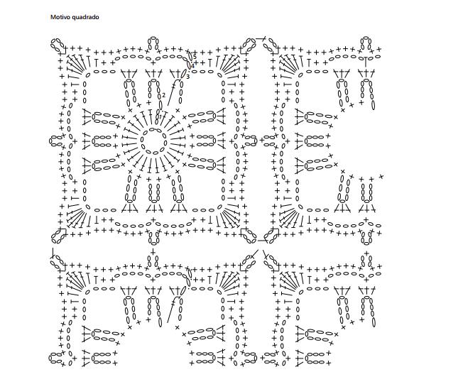 •Motivo quadrado – siga o respectivo diagrama. A partir do segundo motivo, una-os entre si substituindo o