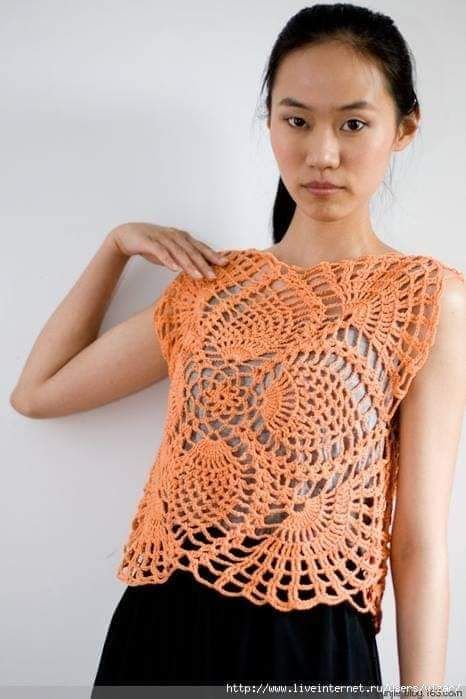 Aqui estão algumas ideias inspiradoras para blusas de crochê com ponto abacaxi que você pode considerar para seu próximo projeto: