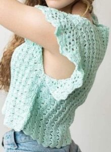 Para finalizar, faça duas alças com 22cm cada, conforme o diagrama, e costure no decote. Com esses passos concluídos, sua blusa de crochê estará pronta para ser usada e apreciada.