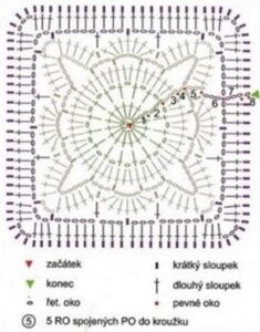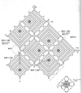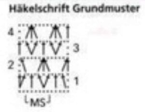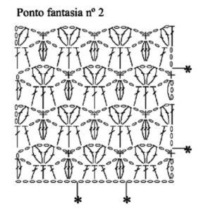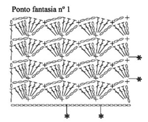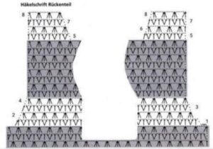 Continue seguindo o diagrama até completar 9cm de altura. Em seguida, faça 36 corr. para uma cava, puxe uma sobra de fio e arremate.