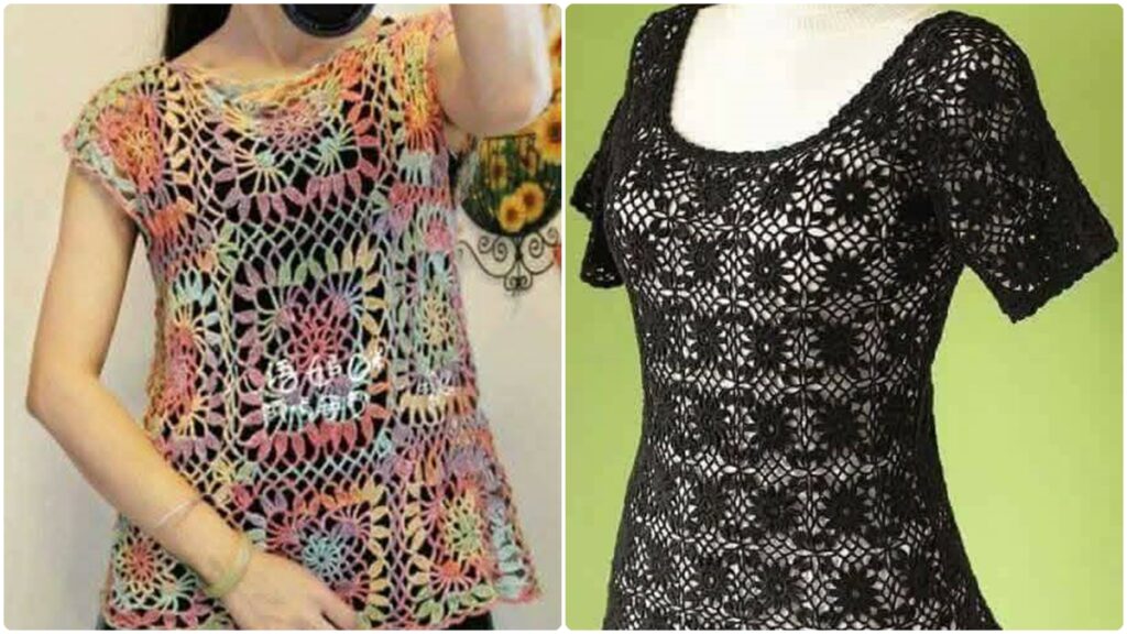 Não existe apenas um tipo de blusa de crochê — existem milhares. E é isso que torna essa peça tão mágica. Alguns modelos que se destacam: