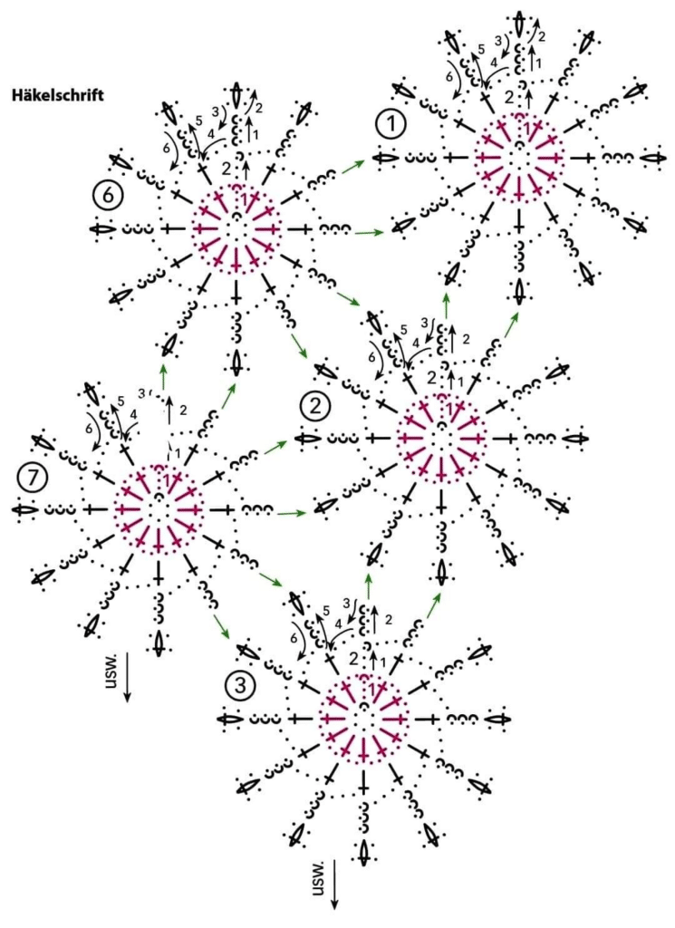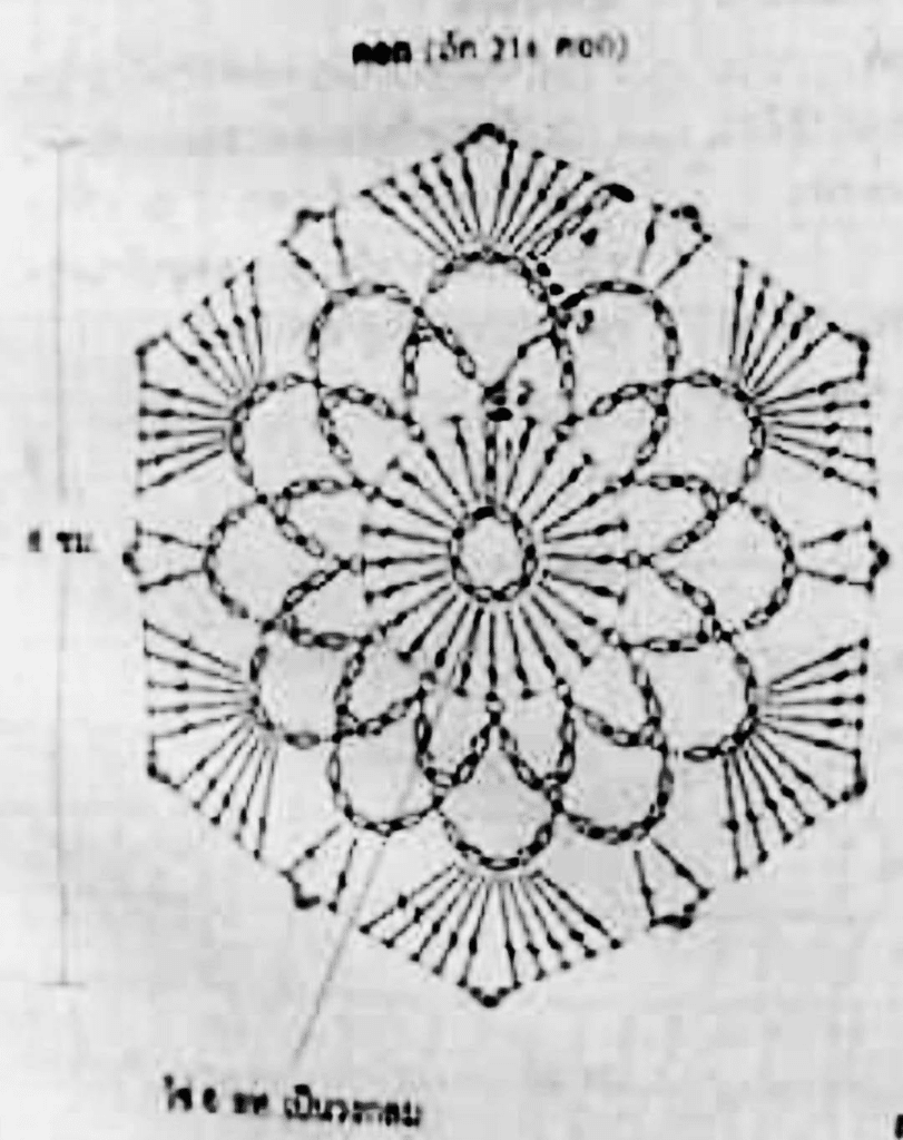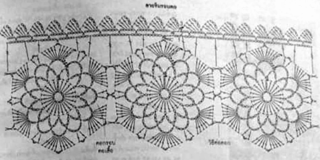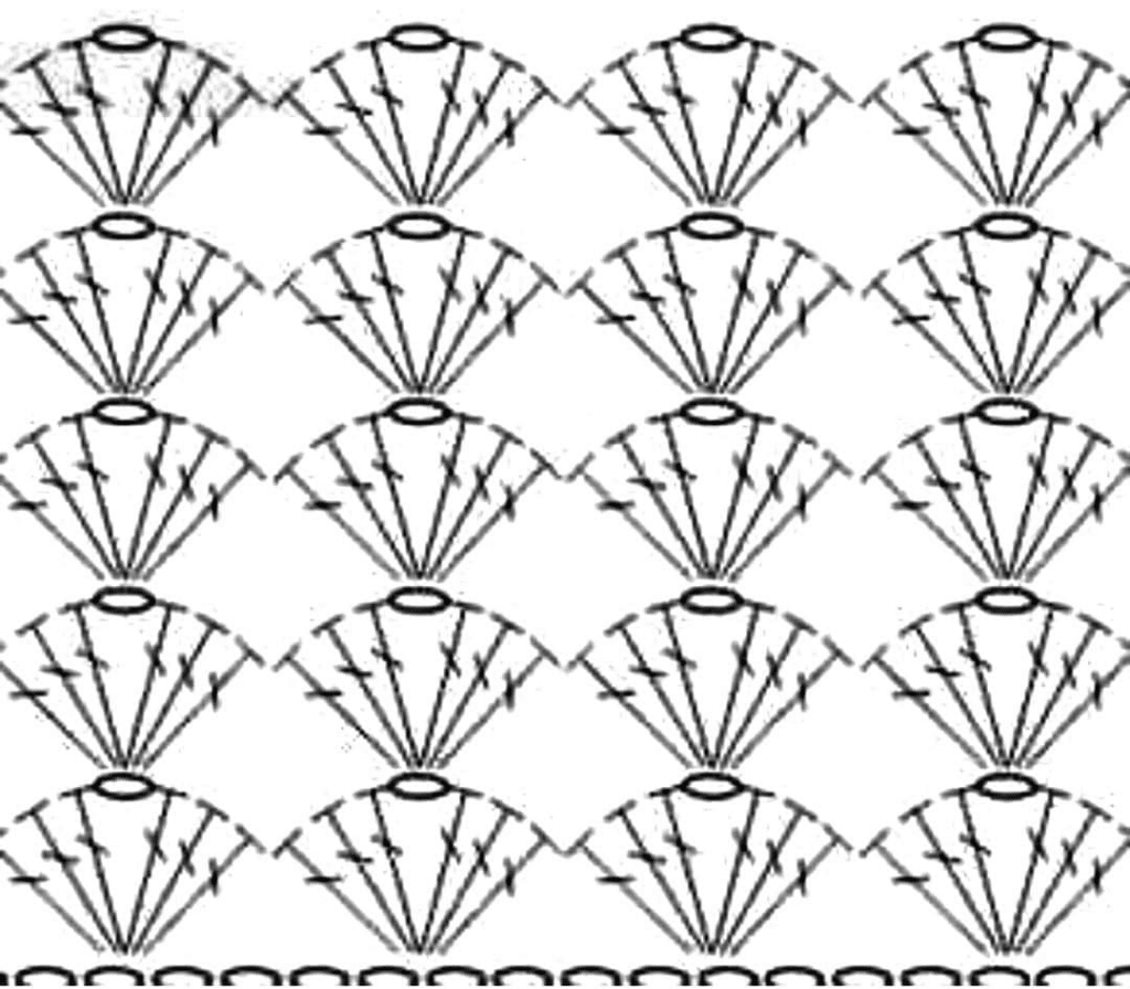 - Trabalhe em ponto fantasia seguindo o gráfico, repetindo de * a * no sentido dos pontos (7 vezes).