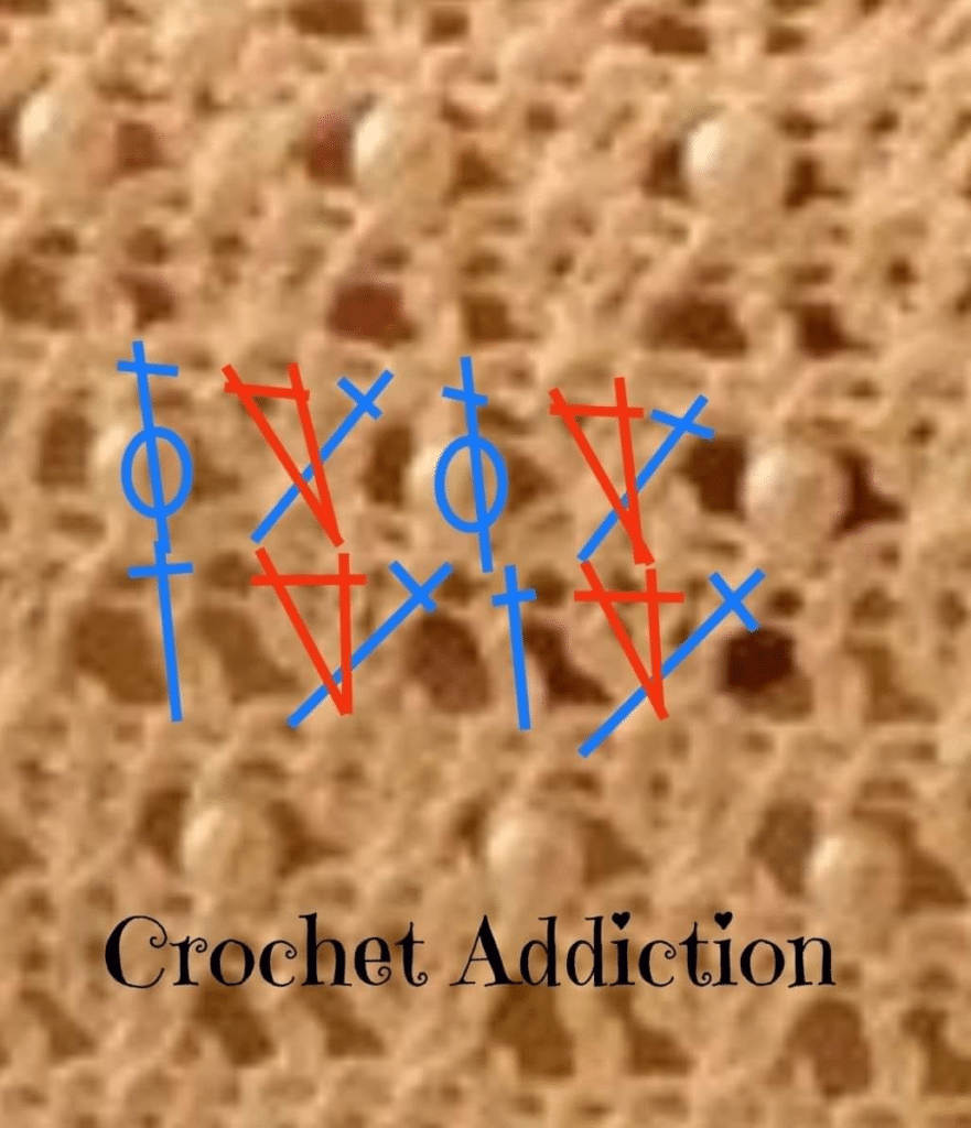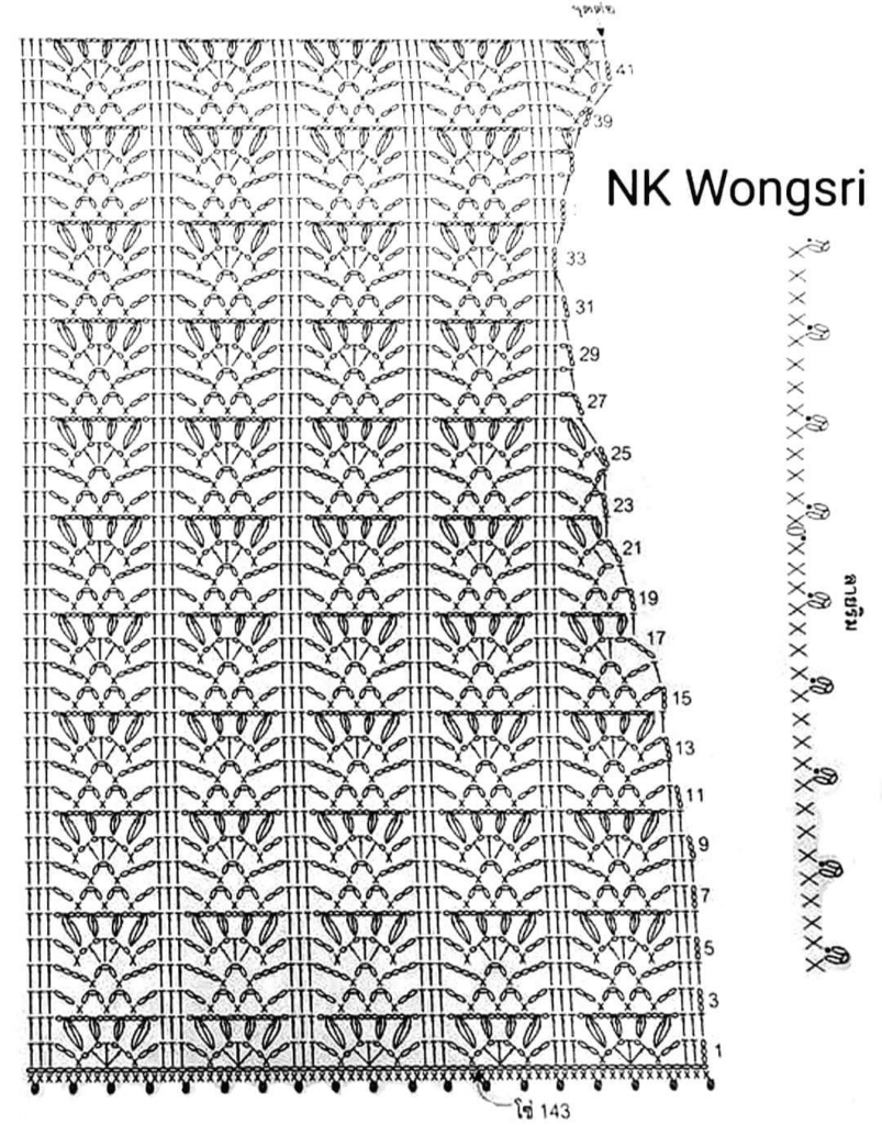 - Retome a outra metade dos pontos e continue em ponto fantasia seguindo o gráfico.