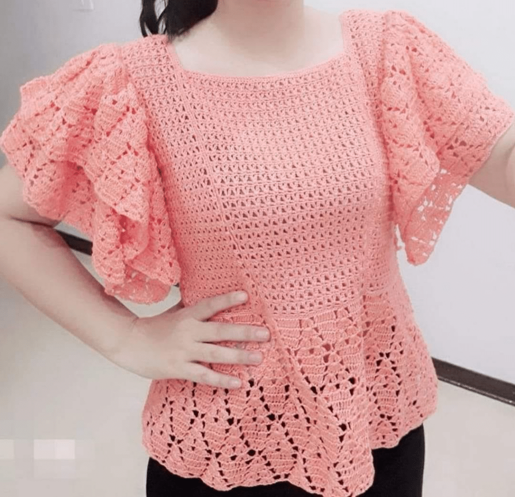 Confira Como Fazer Blusa de Crochê com Manga Babado