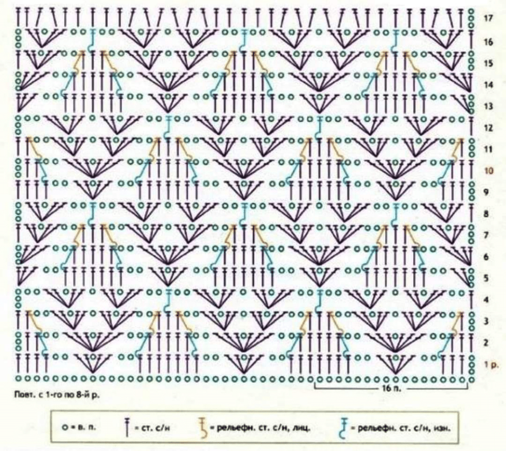 - Faça o acabamento ao redor do decote seguindo o gráfico. Ao finalizar o gráfico, remate.