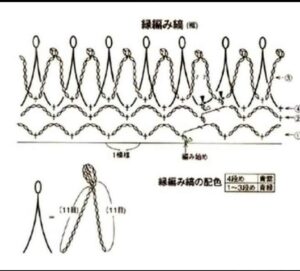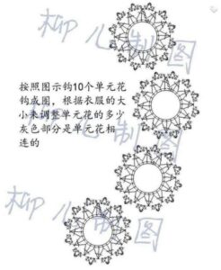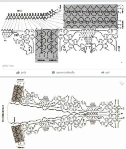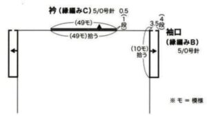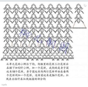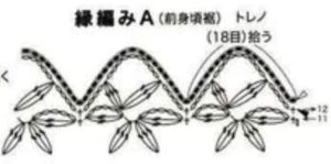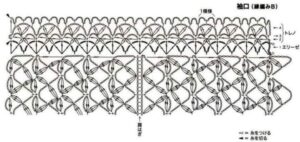 - Para o babado, una o fio na parte interna do decote e trabalhe conforme o diagrama 3, em carreiras de ida e volta.