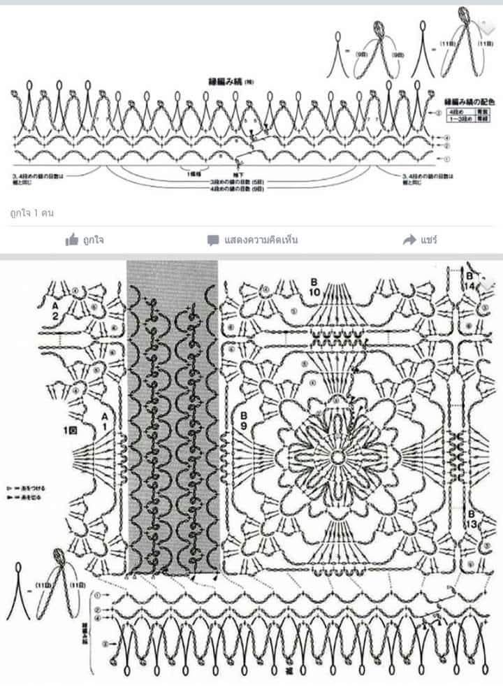 - Aos 22 cm de comprimento, diminua alternadamente 2 motivos, ficando com 18 motivos no total.