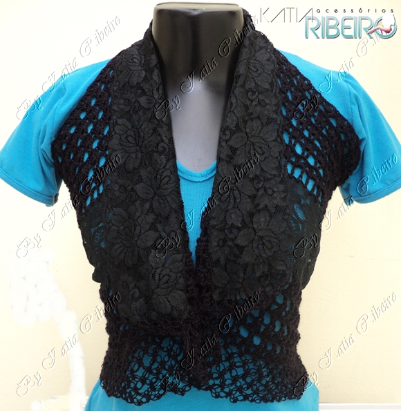Hoje trago uma novidade para vocês, ainda não vi esse modelo de bolero na net, tinha muito desejo de usar renda com crochê e há 2 meses atrás, indo até a loja onde compro habitualmente as minhas linhas, dei de cara com esse modelo e foi amor à primeira vista !!!