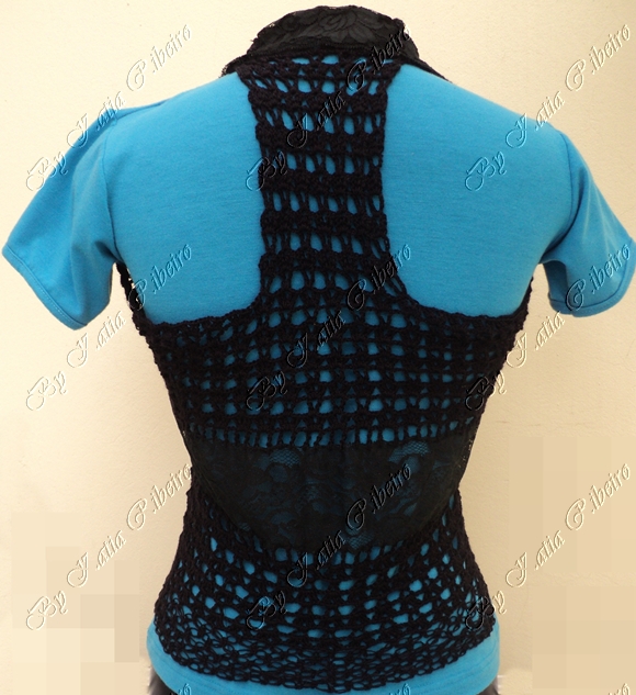 Obs.: Como este modelo de bolero é um pouco difícil de mostrar no manequim, pedí para a querida Cleide Rocha que me cedesse as fotos que ela tirou com a peça (ela também reproduziu o modelo que postei)