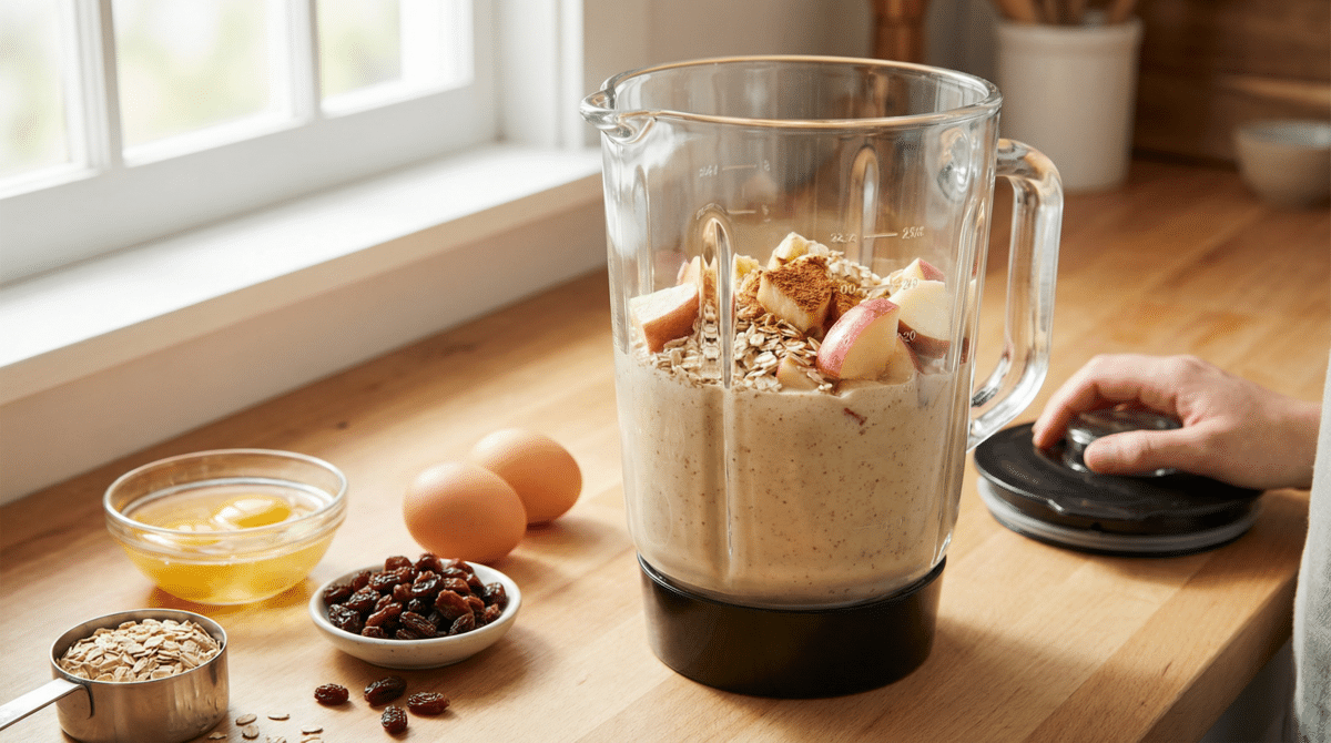 - Base Líquida: No liquidificador, bata 3 ovos, 1/2 xícara de óleo (coco ou girassol) e 3 maçãs médias picadas (com casca para mais fibras).