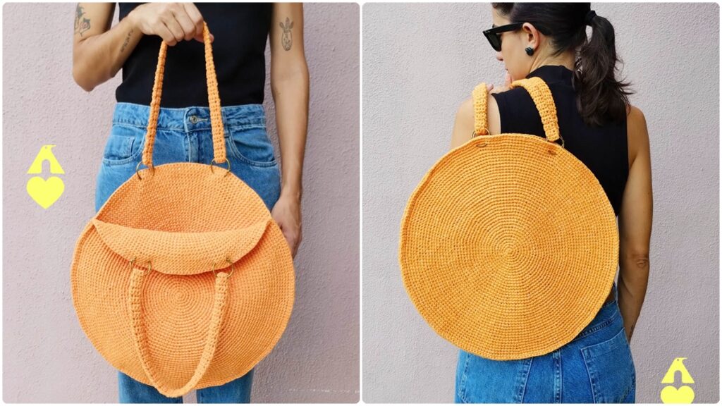 O corpo da bolsa consiste em dois círculos idênticos, confeccionados de forma separada e unidos posteriormente. A técnica básica utilizada é o crochê em espiral, que não exige o fechamento de cada carreira, permitindo uma transição suave entre as rodadas. Para manter o controle da quantidade de pontos, o uso do marcador é indispensável, sinalizando o início de cada volta.