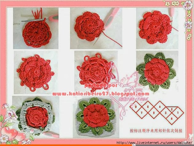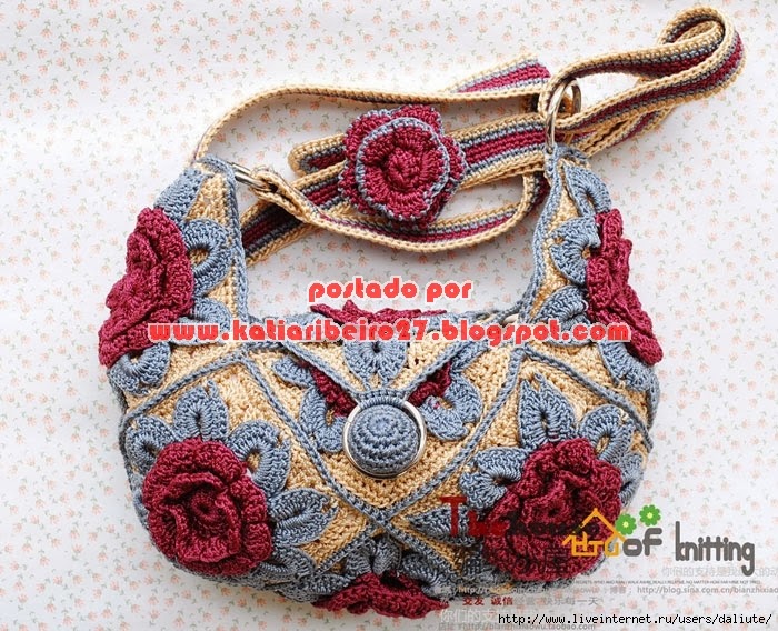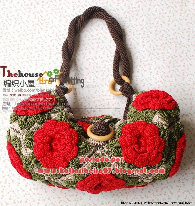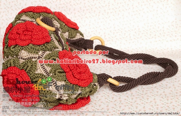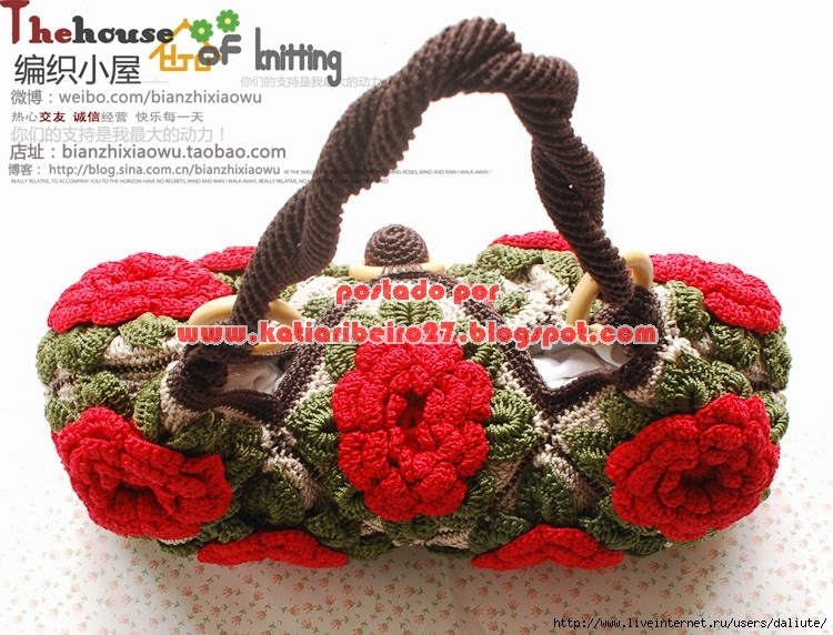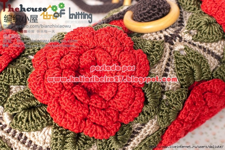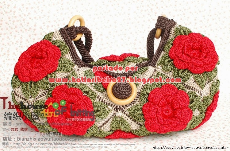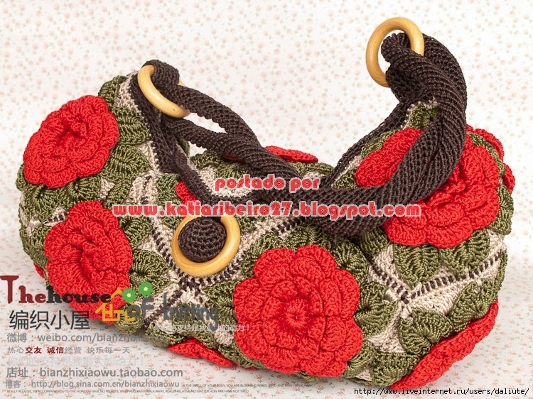 Vocês já perceberam que geralmente quase não encontramos na net bolsas em crochê? Acredito que as artesãs acabam não ensinando na tv pela questão do tempo então todas que encontro nas minhas andanças na net eu posto aqui , essa eu fiquei enlouquecida quando ví , feita com squares no vídeo é ensinado passo a passo como executá la, tem também várias fotos com detalhes e gráficos.