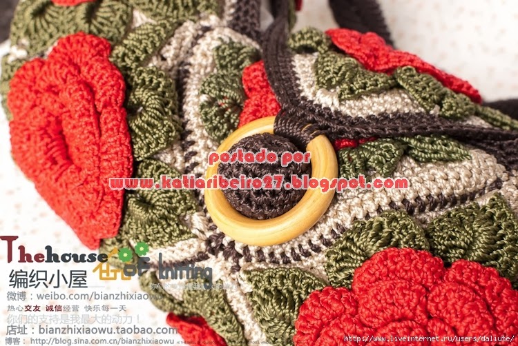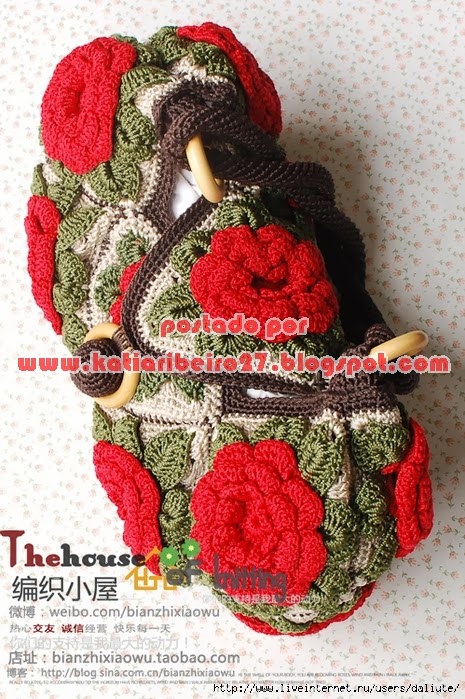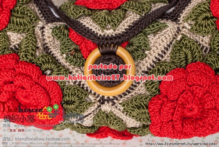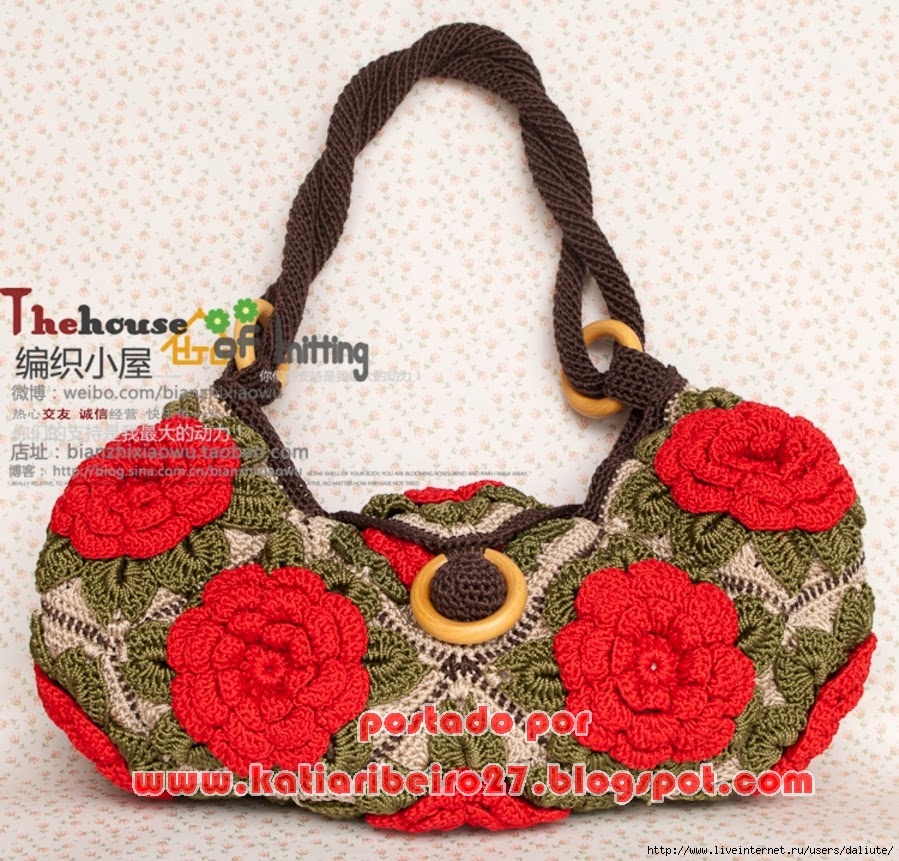 Vocês já perceberam que geralmente quase não encontramos na net bolsas em crochê? Acredito que as artesãs acabam não ensinando na tv pela questão do tempo então todas que encontro nas minhas andanças na net eu posto aqui , essa eu fiquei enlouquecida quando ví , feita com squares no vídeo é ensinado passo a passo como executá la, tem também várias fotos com detalhes e gráficos.
