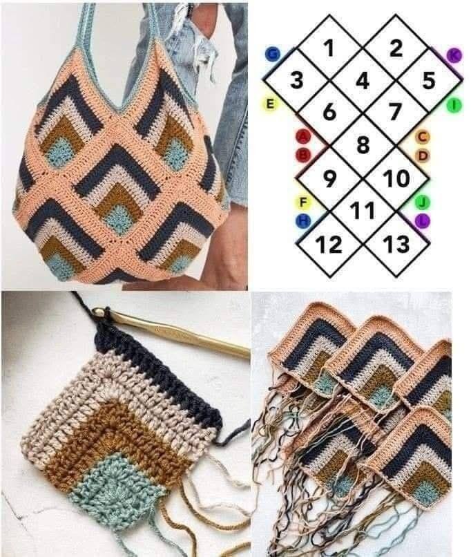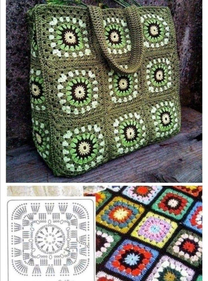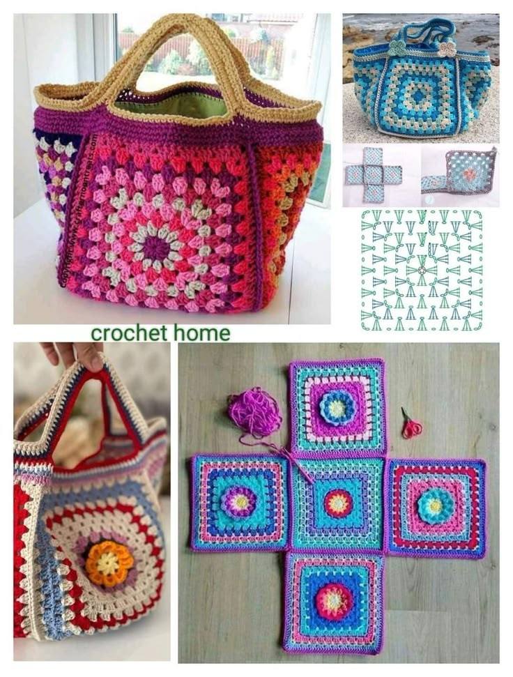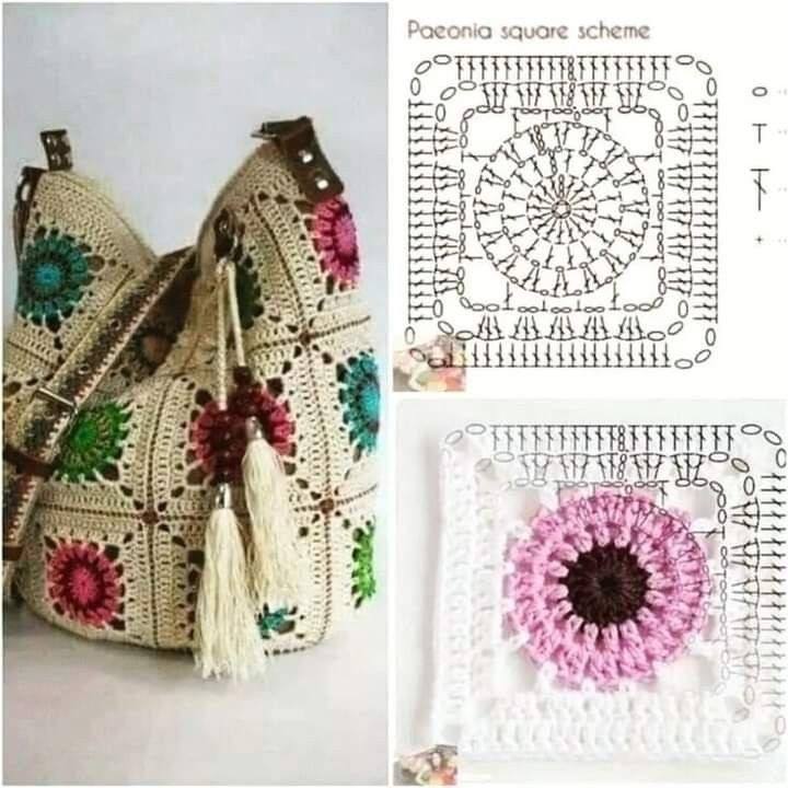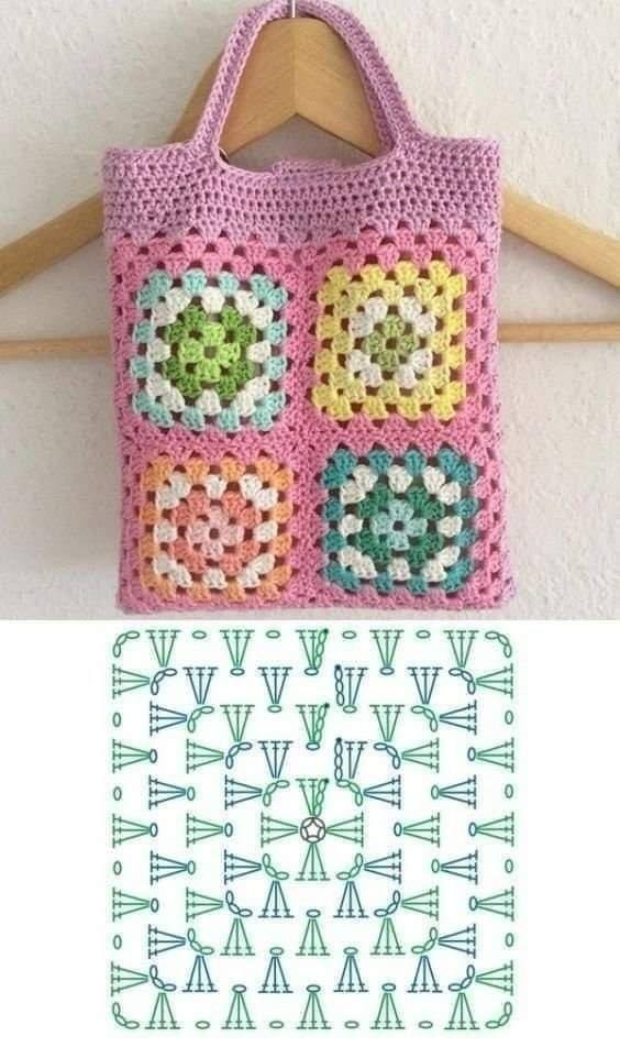 Gráficos e Inspirações de Bolsas de Crochê com Squares: