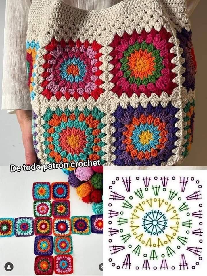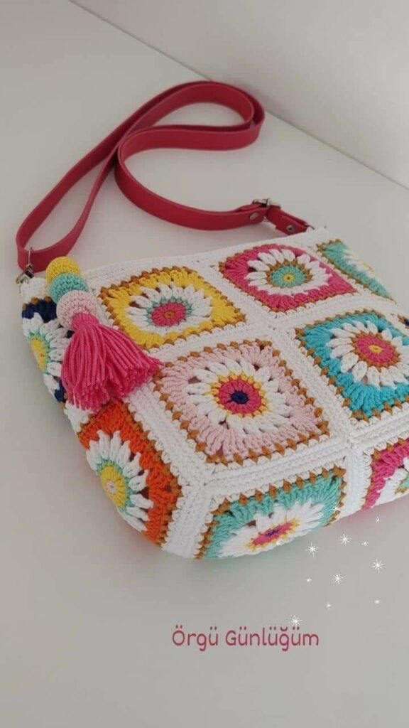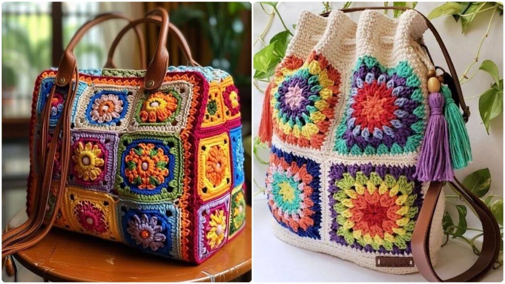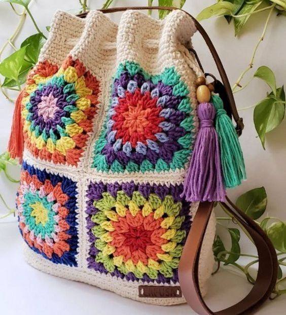 As possibilidades são praticamente infinitas: bolsas de mão, transversais, mochilas pequenas e até sacolas para o dia a dia. As combinações de cores podem seguir um estilo vintage, boho ou moderno, e os squares podem ter formatos diferentes — florais, geométricos, com relevo ou mistos.