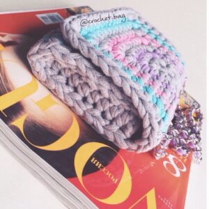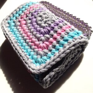 - Fio de malha: O fio de malha é o mais recente e tem feito bastante sucesso nas redes sociais e lojas de artesanato. Por ser mais maleável e grosso é necessário um pouquinho mais de paciência e experiência para criar as bolsas de crochê com esse material.